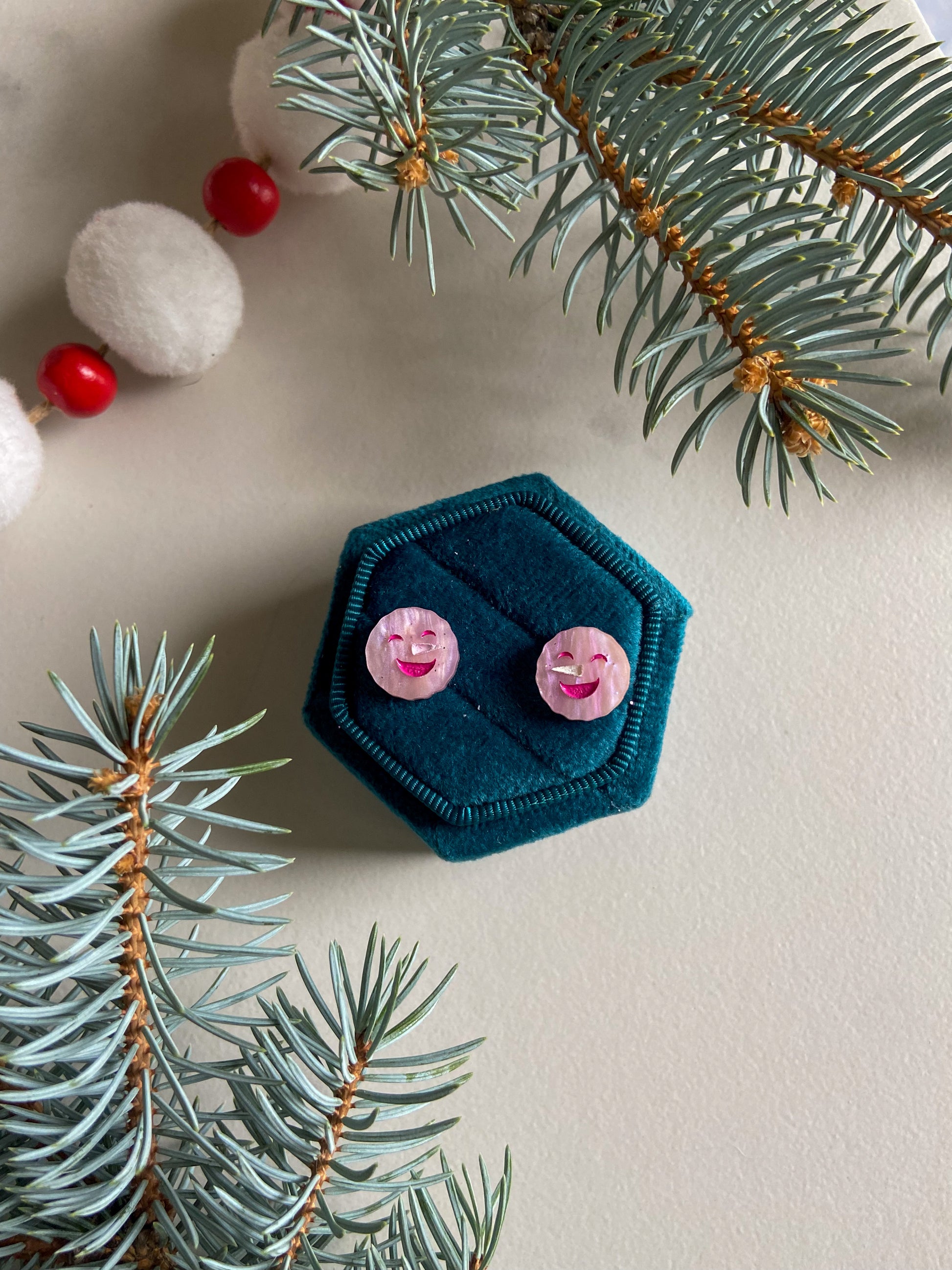 These wintry, holiday studs are perfect for your everyday or party looks. Choose from original white and pink. Both are pearlescent with a subtle shimmer. All of my studs are made of acrylic, which is durable and lightweight. The stud backs are stainless steel and hypoallergenic. All earrings are hand assembled and designed by me. These are made of laser cut acrylic. The acrylic is thin and lightweight, resulting in a bold look without being heavy. Each earring weighs less than 1 oz, which is about the same as a nickle. As always, the earrings are designed and assembled by me, Alexis. As is the nature of handmade items, slight variations will occur. Any earrings purchased will be made of the same materials as in the photographs, but many of the acrylics I use are marble or glitter designs and there are subtle variations in these patterns.