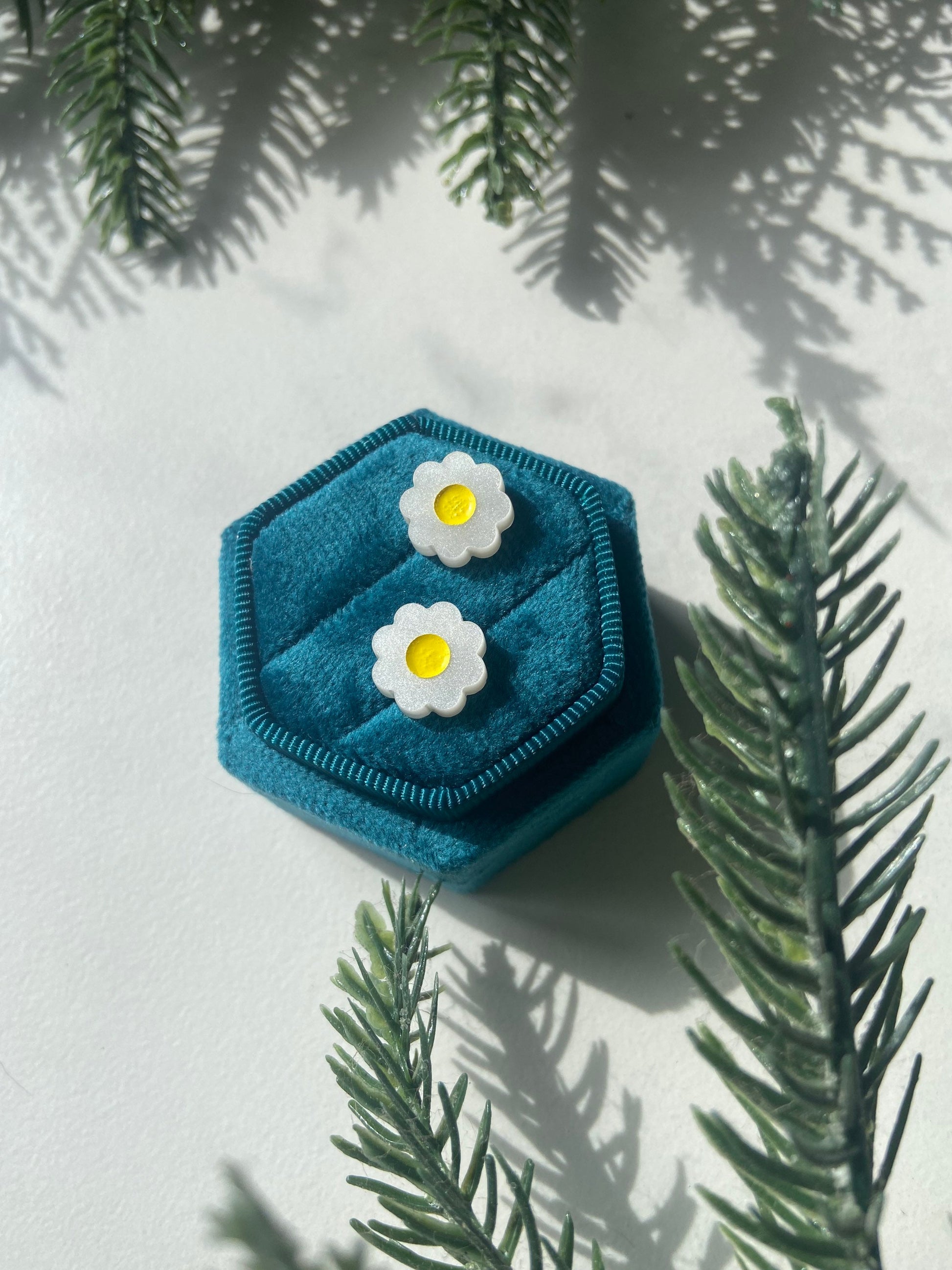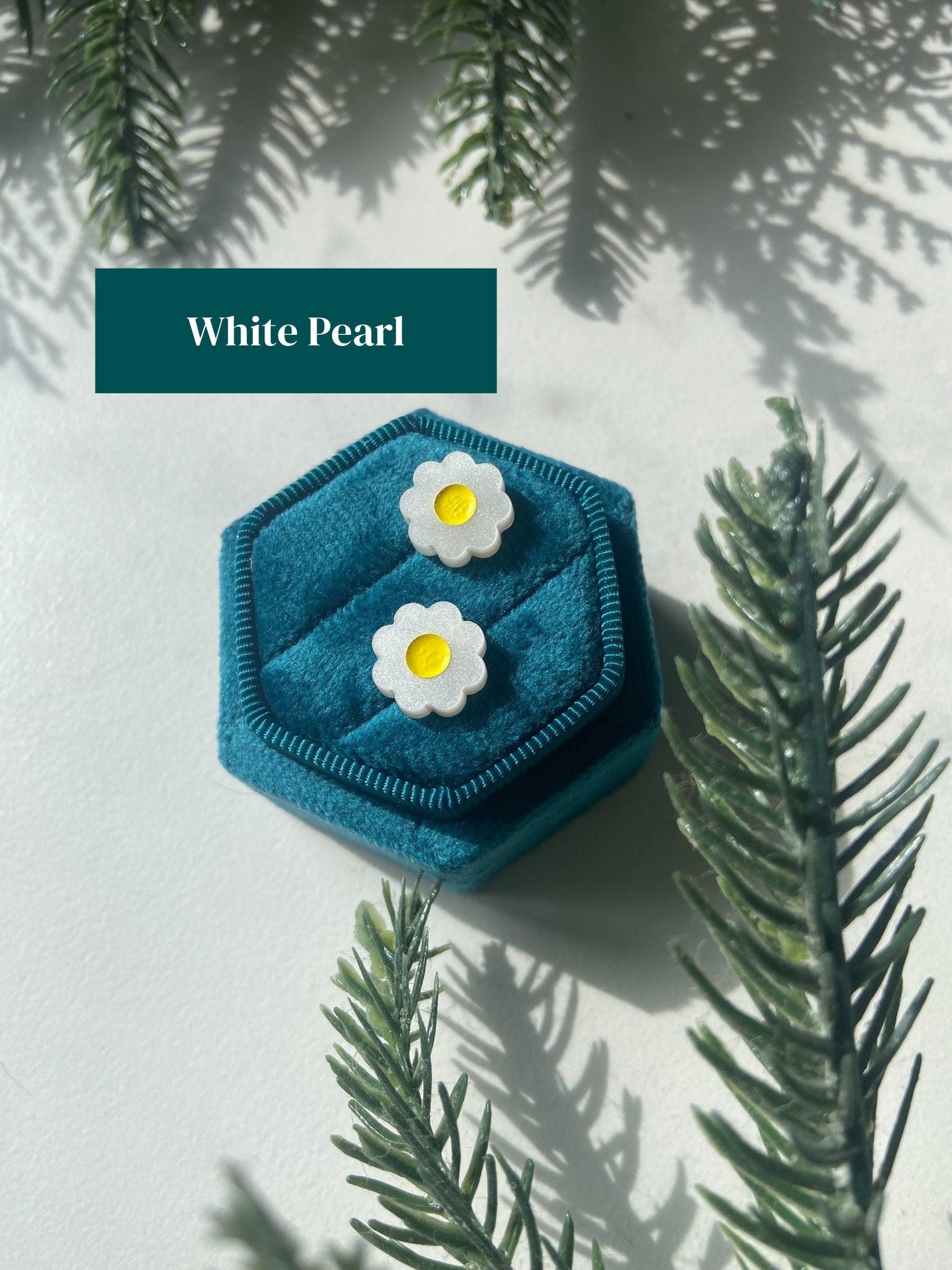 Little daisy studs perfect for spring and summer. These little flower earrings are made of laser cut and engraved acrylic. the centers are engraved and hand painted. The photos show all your available options. The posts and backs are nickel free stainless steel. These are made of laser cut acrylic. The acrylic is thin and lightweight, resulting in a bold look without being heavy. Each earring weighs less than an ounce, which is about the same as a penny. As always, the earrings are designed and assembled by me, Alexis. As is the nature of handmade items, slight variations will occur. Any earrings purchased will be made of the same materials as in the photographs, but many of the acrylics I use are marble or glitter designs and there are subtle variations in these patterns.
