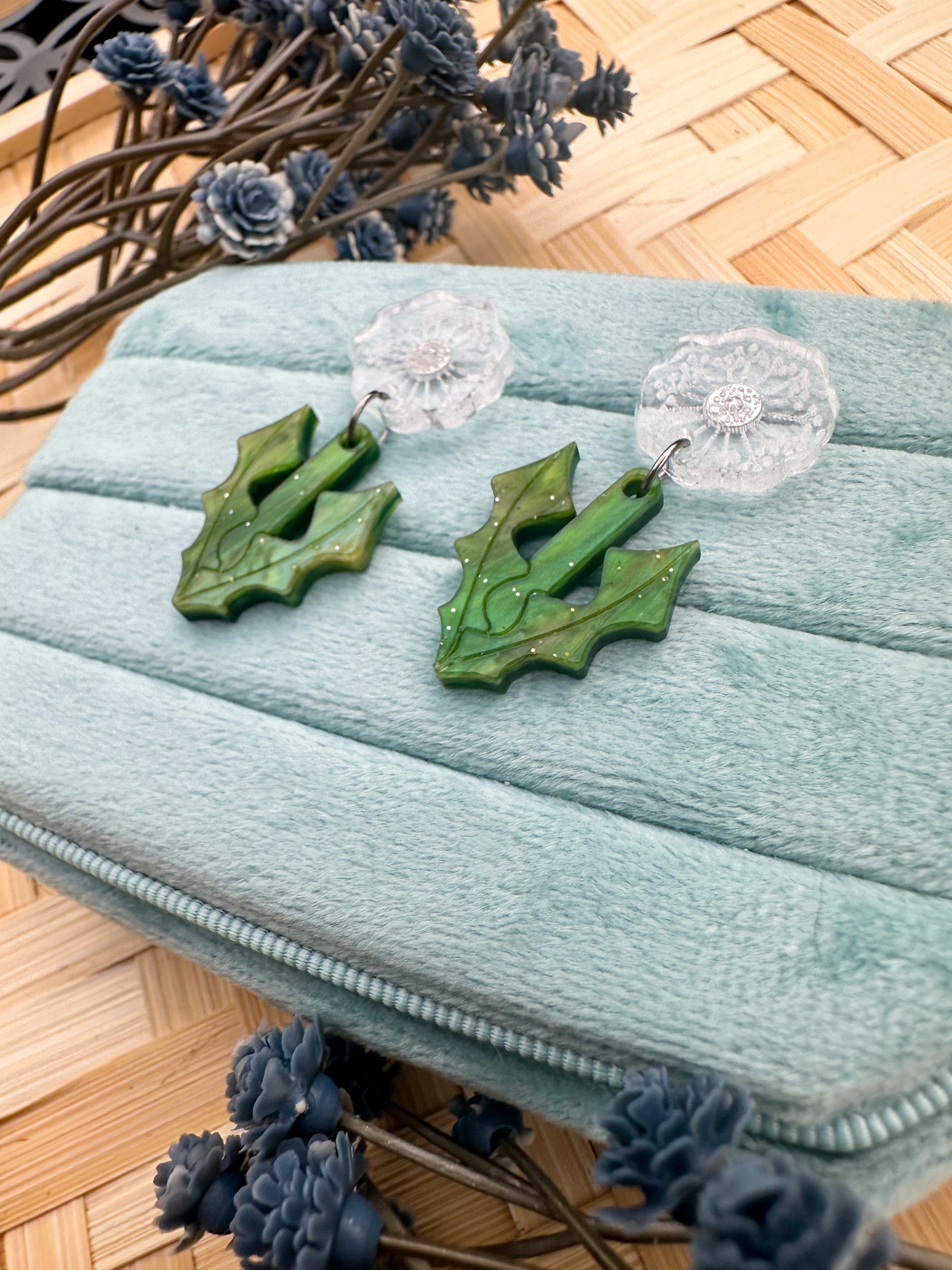 These are made of laser cut acrylic. The acrylic is thin and lightweight, resulting in a bold look without being heavy. Each earring weighs less than an ounce, which is about the same as a penny. As always, the earrings are designed and assembled by me, Alexis. As is the nature of handmade items, slight variations will occur. Any earrings purchased will be made of the same materials as in the photographs, but many of the acrylics I use are marble or glitter designs and there are subtle variations in these patterns.