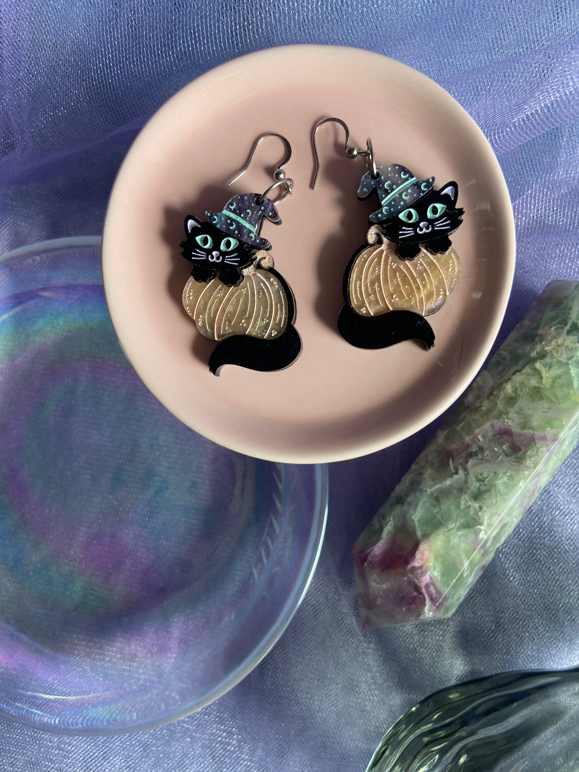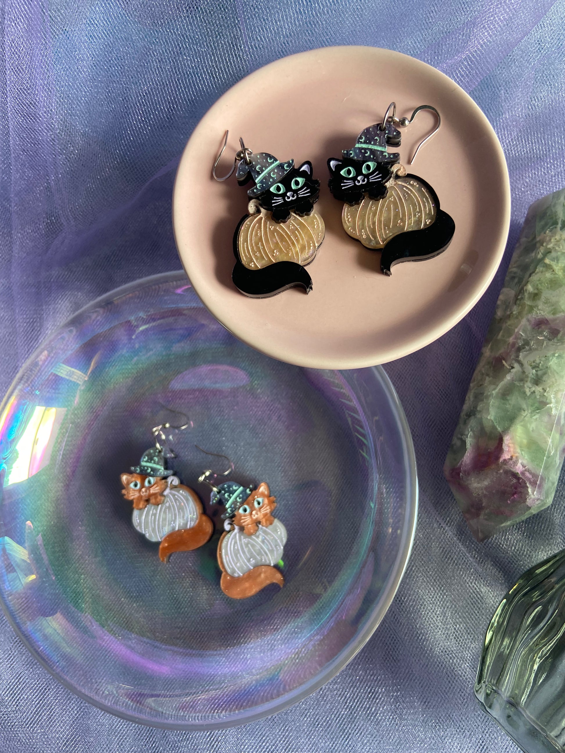 These pumpkin kitties are the familiar of our "Hex the Patriarchy" witch design - their hats even match!