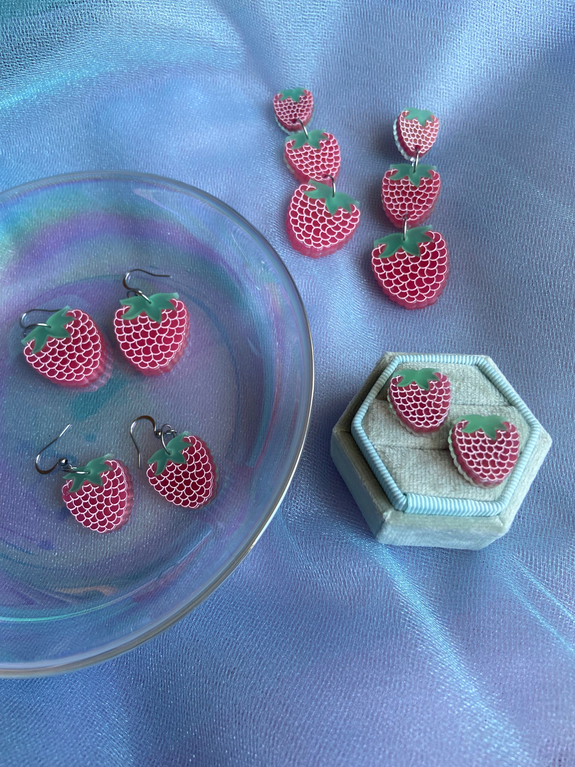 Celebrate summer with these whimsical statement earrings! These raspberry earrings are perfect for summer and come in a variety of styles. This listing is for statement studs. The acrylic used in these pieces is a dimensional raspberry pink and frosted green.