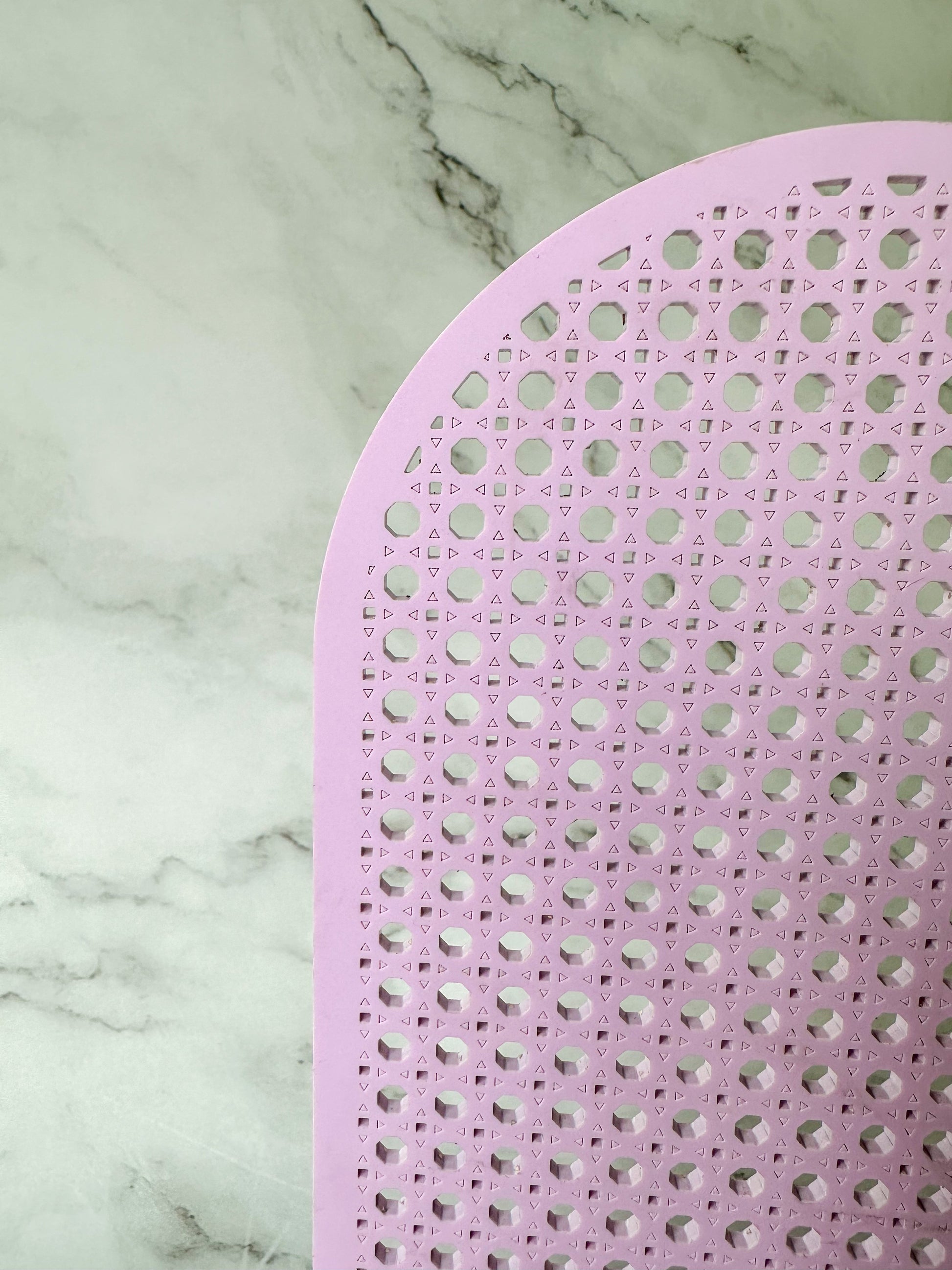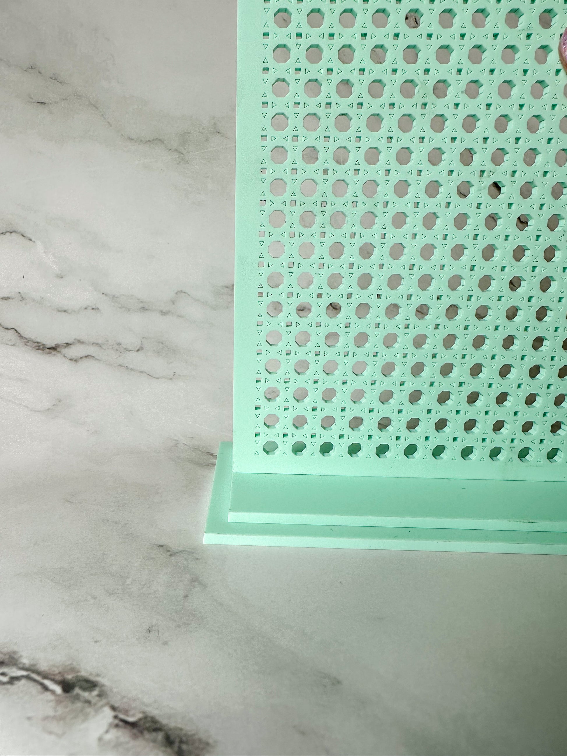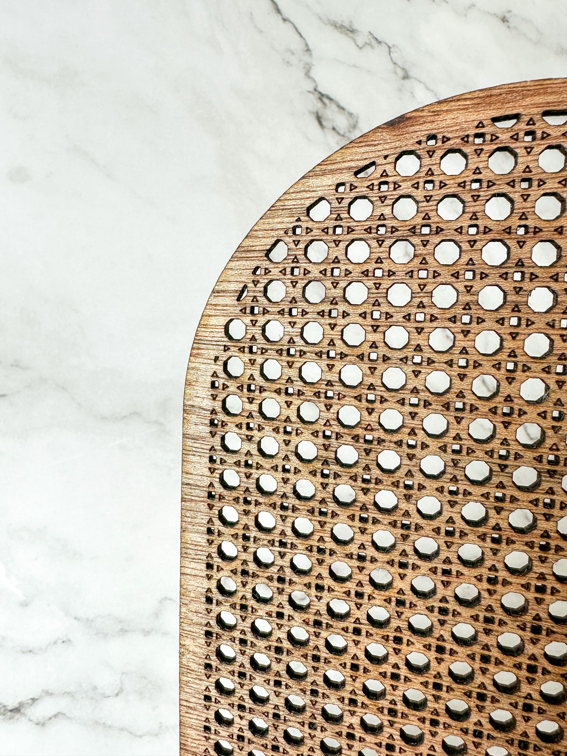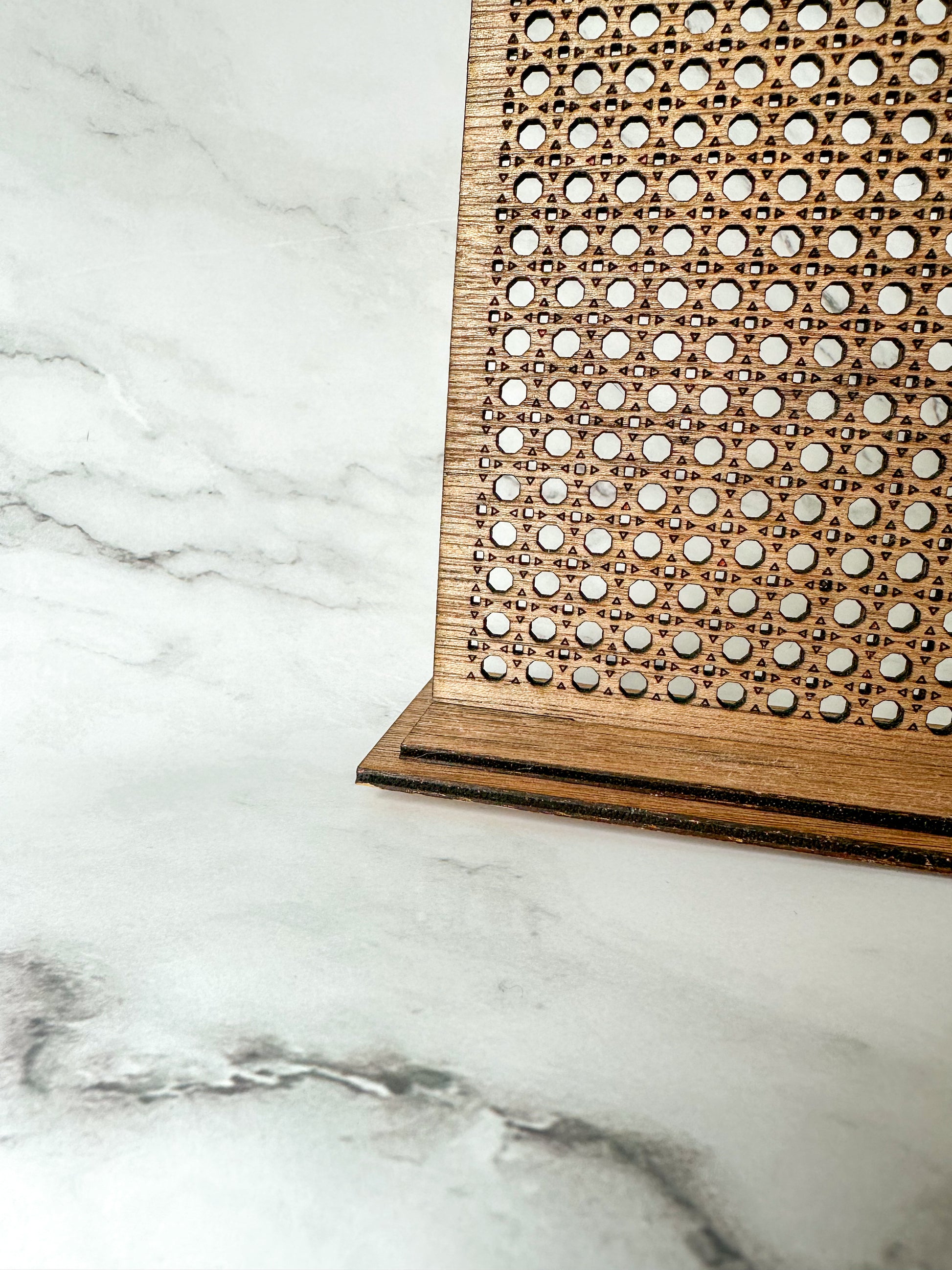 These earring stands are a beautiful way to store and showcase your earring collection. The rattan design is cut into the stand giving it a vintage vibe. Earrings can be put through the large or small holes, and the holes can accommodate studs and dangle earrings.